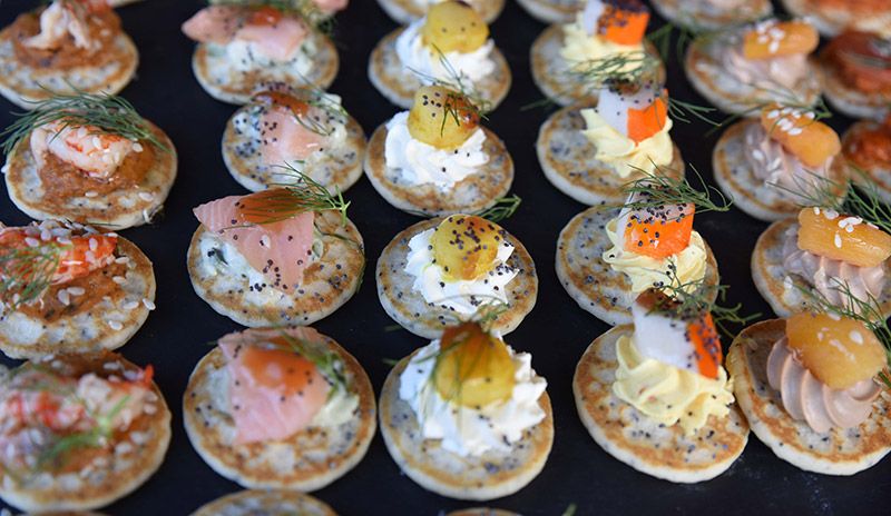 Minis blinis caviar de courgette et queue d’écrevisse...